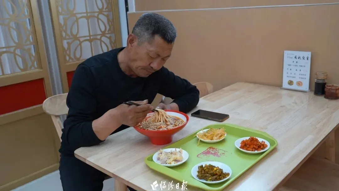 3月22号中午12点钟,山西临汾襄汾西边的服务区里,“好晋道”这家面向司机开放的食堂,迎来了一天里头最为热闹的时段。有个来自河南的货车司机叫杨建德,他端着个餐盘在那儿。餐盘上面放着一碗西红柿鸡蛋面,还有四个小凉菜。这些饭菜加起来总共才花了9块9毛钱。他跟记者讲,自己跑车都已经十五年了,在高速服务区吃饭这还是头一回碰到能吃到这么性价比高的饭菜,并且要是饭不够吃的情况下还能够免费接着续面。