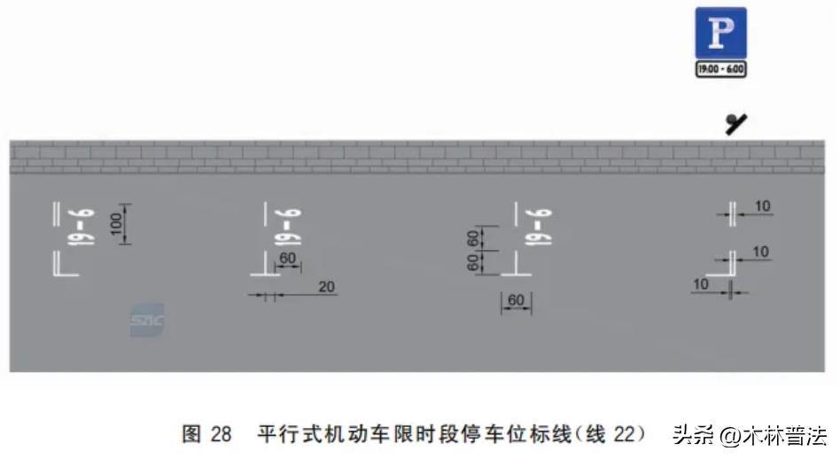 新规针对停车位标线给出了更为精细的分类表现。属于限时段停车位这类的,其采用白色虚线围挡边框,并且于框位之内标记注明允许停车的具体时间段。针对连续排列开来的停车位彼此之间那部分区域,运用白色填充线条用以表明禁止停车的特定区域范围。