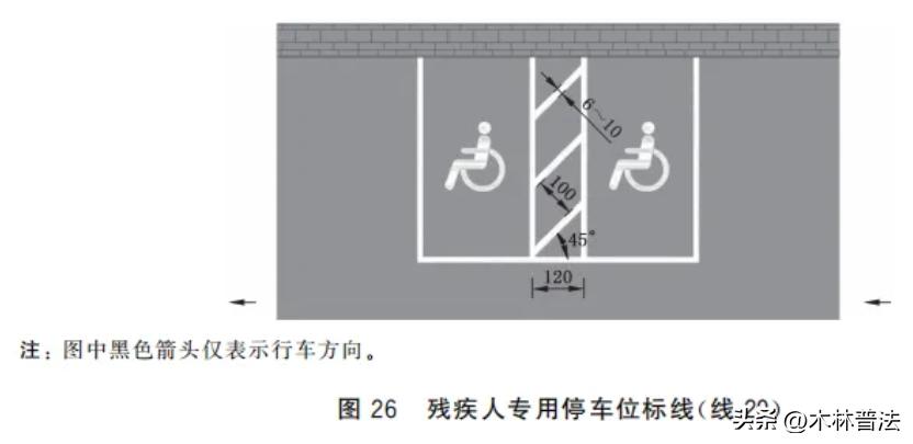 具有特殊标识的残疾人专用车位,其一侧的白色区域用作方便残疾人上下车的区域,普通车辆是绝对不允许占用的。用白色边线以及自行车图案来标识的非机动车停车位,使之与原来容易混淆的蓝色标线相区分进而有所改变了。