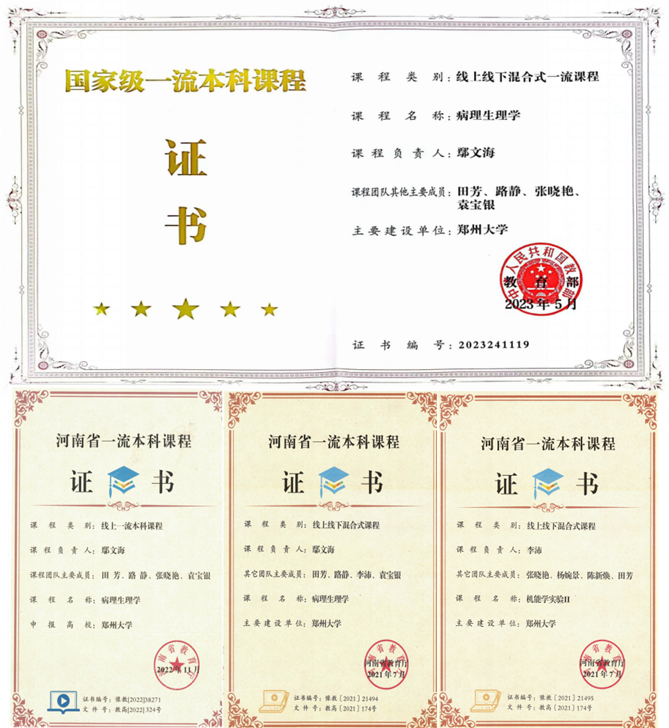 在2020年的时候,这门课程得到了国家级线上线下一流本科课程的认定,这意味着郑大病理生理学的教学水准进入到了全国第一方阵之中。课程的网址直至如今依旧在运行着,并且持续为全国的医学生提供服务。